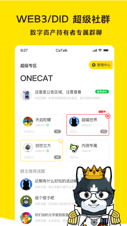半开放式社群空间,已支持万人同时在线,同时参与群聊。