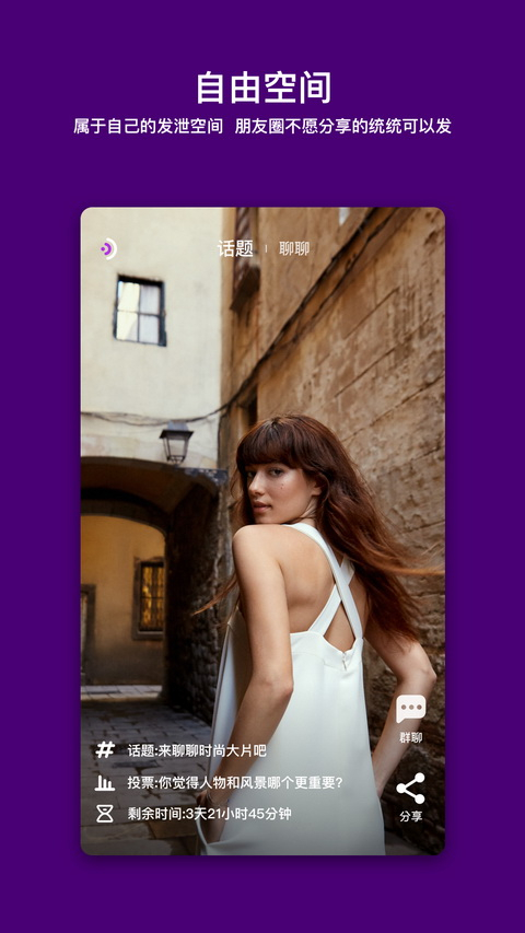 你能够自由创建话题,并且可以把话题分享到微信好友、朋友圈以及微博,邀请微信和微博的好友以匿名方式参与你所发布话题的讨论,从而听到更多真实的意见和心声。
