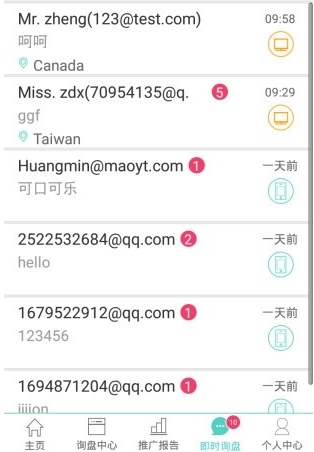 4.点击询盘中心,用户可以在这里了解各种买家的信息以及邮件;