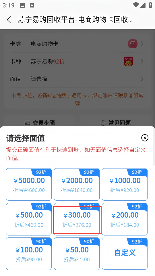 3、于面值选择页面,挑选相应面值,进而进入提交页面。