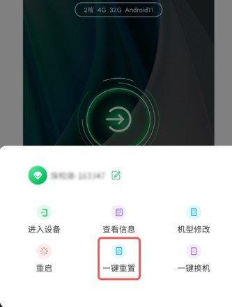 一键重置等同于恢复出厂设置,开启此功能后,云手机内的所有数据都将被清除(试用机型无法使用该功能)。