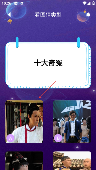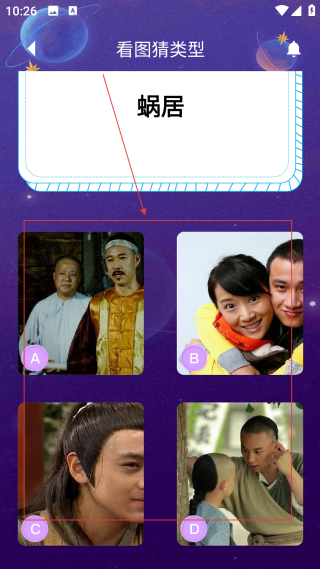 3、在看图猜类型页面,依据剧名,选择【对应的剧集图片答题】以进入下一题。