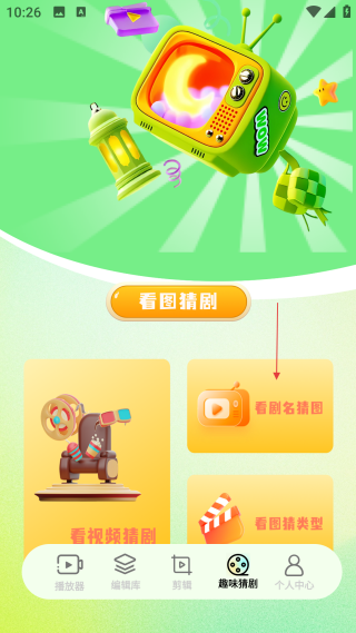 2、于趣味猜剧页面,点击【看剧名猜图】这一选项,随即进入与之对应的猜剧类型答题页面。