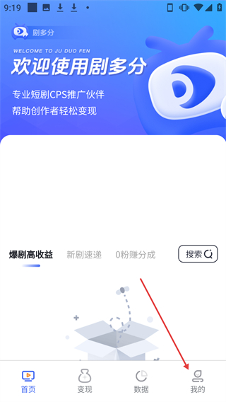 1、在【剧多分】首页,点击底部的【我的】选项,便可进入个人中心页面。