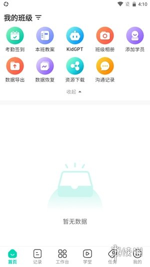 3平台首页集成了几项关键功能入口,包括日常考勤记录、教学方案查看、班级影像资料管理以及新学员信息录入等基础操作模块。