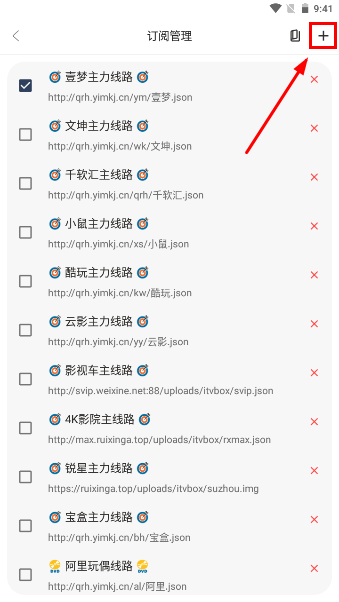 3进入订阅管理页面后,初始状态下界面中不会显示这些线路,此时可以点击右上角的加号按钮。