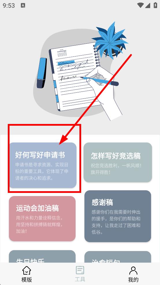 1进入平台后,可根据实际需要从校园、工作、生活等模板分类中选择,也能在搜索框输入相关词汇,再从搜索结果里找到合适的申请书模板。