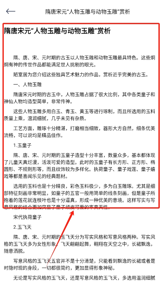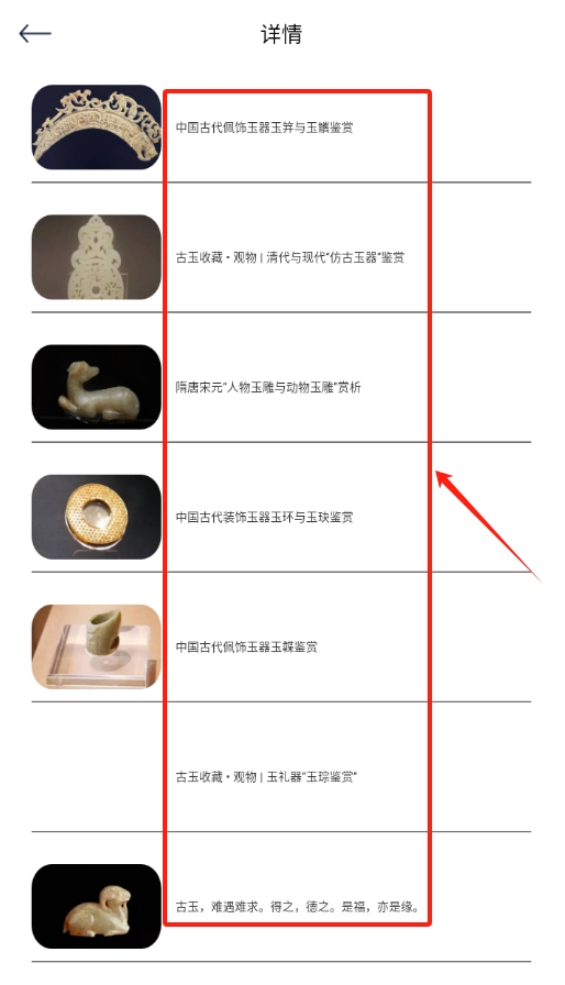2、进入古玉页面后,能看到各种各样关于古玉的知识,内容十分丰富。
