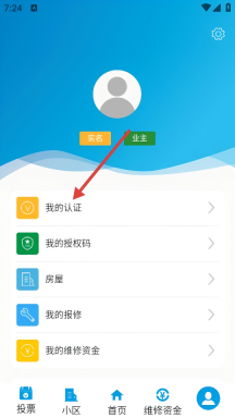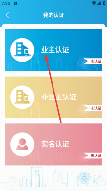 3在认证页面选择业主身份认证选项,系统会自动跳转到信息登记界面,此时可着手准备相关材料以便提交。