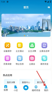 1、在首页点击【我的】,进入个人功能界面,这是开启业主认证流程的第一步。