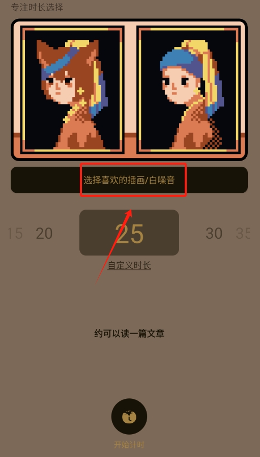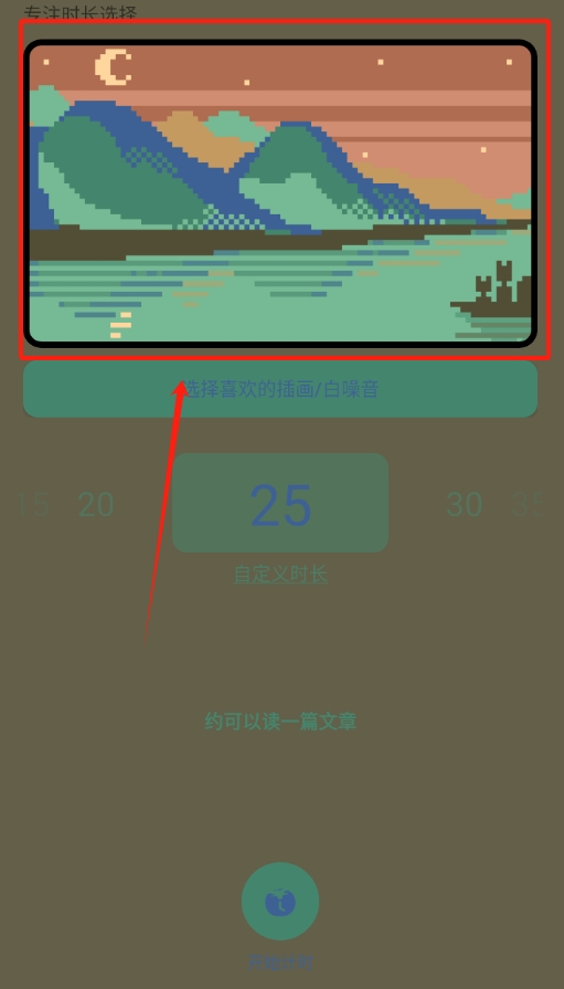 3、 应用选好的插画后,返回番茄钟页面,就能看到刚换上的新插画啦。