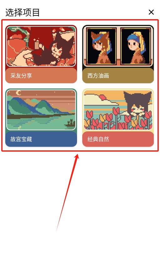 2、进入主题选择页面,挑选喜欢的像素风插画主题或联动「色采」应用获取更多主题。