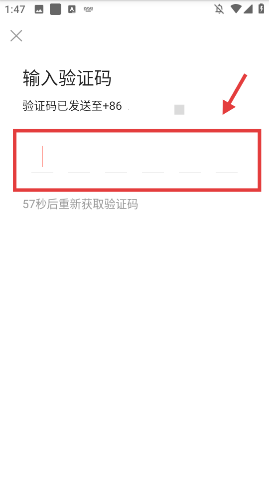 4、在验证码输入页面填写收到的验证码,以完成登录流程。