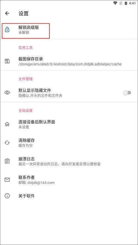 一、怎样解锁高级版本 1. 启动甲壳虫adb手机助手,点击界面右上角的“设置”图标,进入设置选项页面