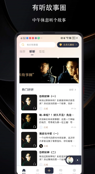 有听故事圈是一款专注于为用户提供短篇故事的音频软件,以圈子形式为不同用户提供各类故事 上下班地铁听个故事~ 开车无聊听个故事~ 睡前静心听个故事~ 中午休息听个故事~在这里,用户不仅可以成为创作者,用文字编织精彩故事获取利益,还可以成为听众,沉浸在优质故事中;还可以在故事圈广场与志同道合的朋友交流互动,让每一次与故事的相遇都充满惊喜和温暖。感兴趣的朋友不要错过。