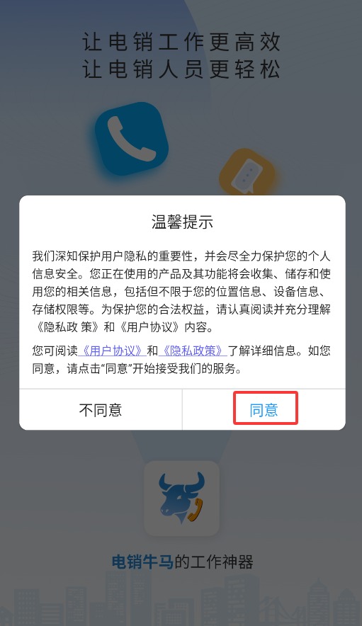 1、首次启动应用时,需点击同意用户协议弹窗,才能进入登录主界面。