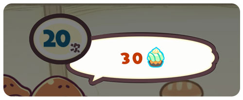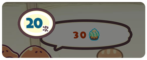 对话框左上角的数字代表顾客“菇菇”枯萎前剩余的可操作次数。每当消除一个方块,这个数字就会减1 。一旦该数字变为零,顾客就会变成“枯哭菇菇”。“枯哭菇菇”似乎几乎不会给予NP……请注意,尽量避免让顾客枯萎哦!