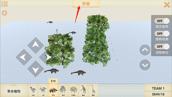 5、点击左下角的“选择单位”,挑选你想要放置的动物、武器以及古代人类。