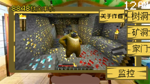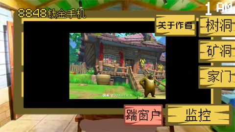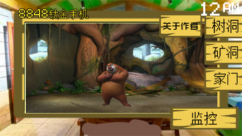 2、监控画面分别为树洞、矿洞和家门,现在可以看见熊大在树洞;