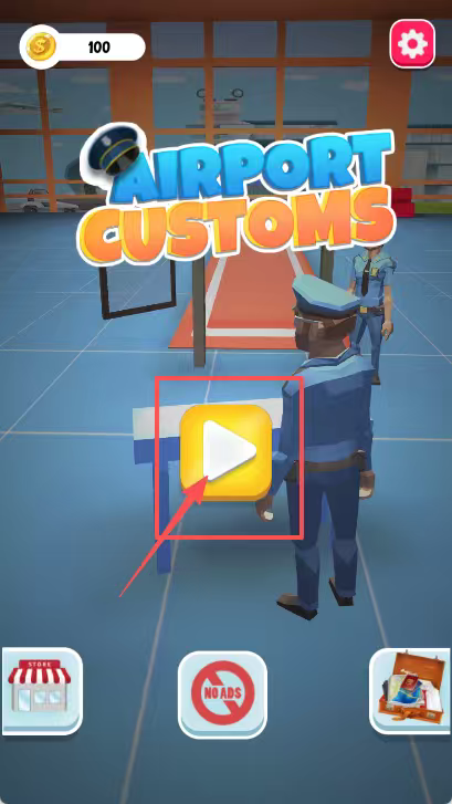 1. 映入眼帘的是一枚金色硬币,上面显示着100,旁边的齿轮代表设置。页面中间有着极为醒目的游戏标题,在其下方,一个红色框圈住了黄色的播放按钮,只需直接点击这个按钮,就能开启游戏之旅。