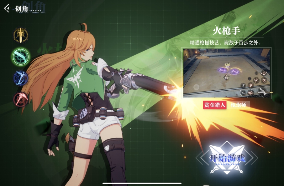 攻速属性的枪手,大招具备远程攻击与大范围伤害能力!技能攻击耗时较长,技能衔接相对容易。不过要留意,这是个消耗型角色,在衔接普攻时需注重走位!该角色拥有四种攻击属性,能够随时切换。其没有近战攻击手段,血量不多,害怕被敌人近身。