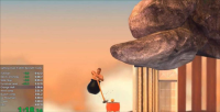 1、玩家操控着一个坐在类似缸里的角色,借助一把榔头持续向上攀爬,操作方式十分简易