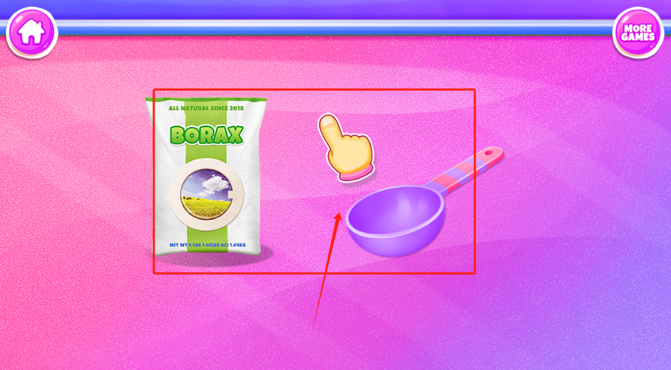 2、根据红框里的提示,先拿勺子舀取硼砂粉,箭头会指示你需要添加的量。