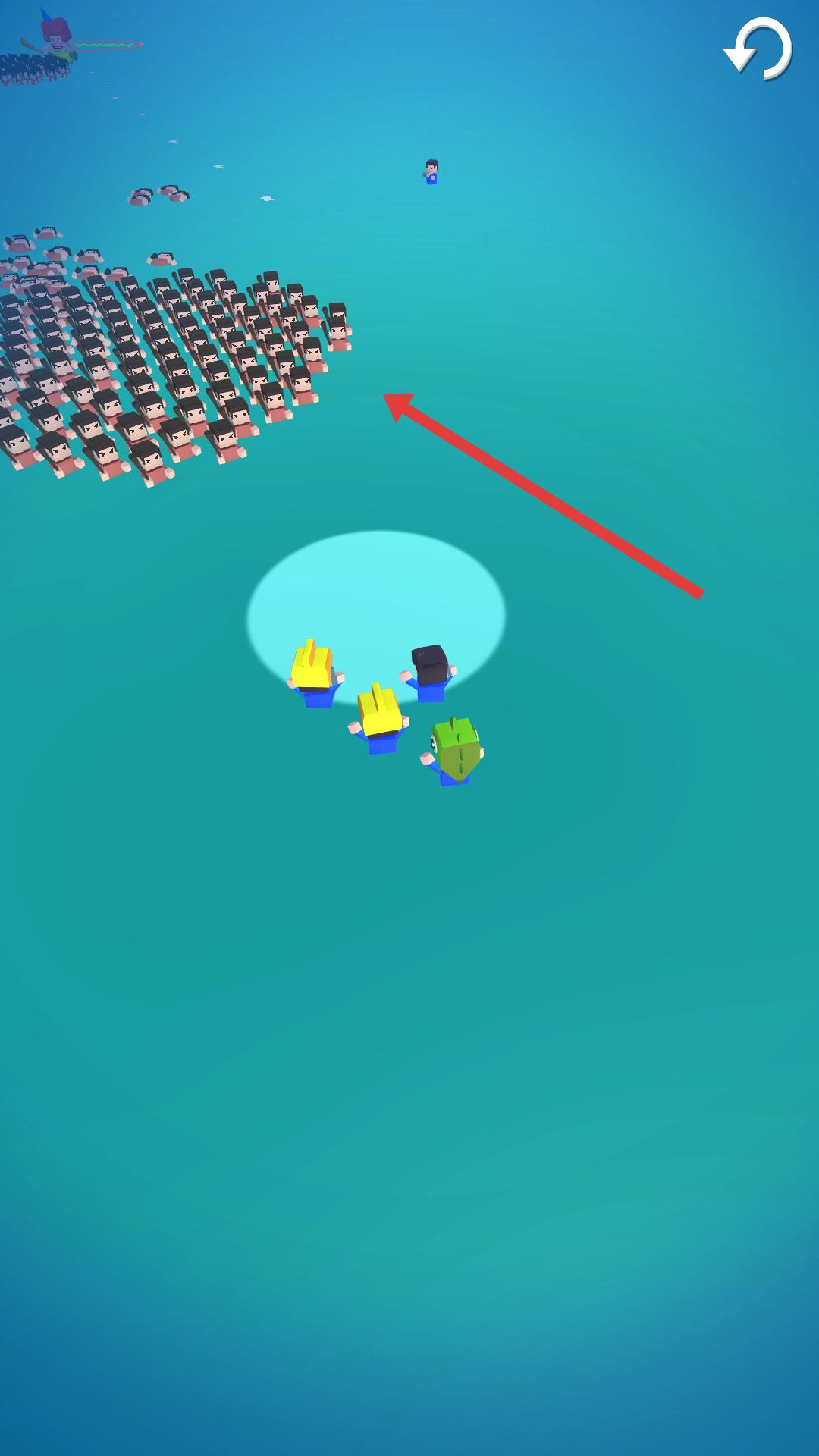 3、率领汇合后的队伍,朝着箭头所指的敌方人群推进,借助人数优势发起冲击,逐步蚕食敌方力量,拓展己方势力范围,达成关卡目标。