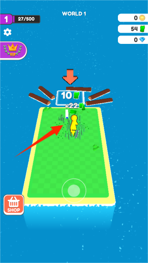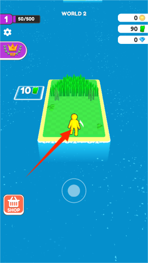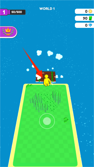 1、初次体验时,通过手指划动操控角色收集地面杂草,每捆绿植都能兑换成钞票奖励。