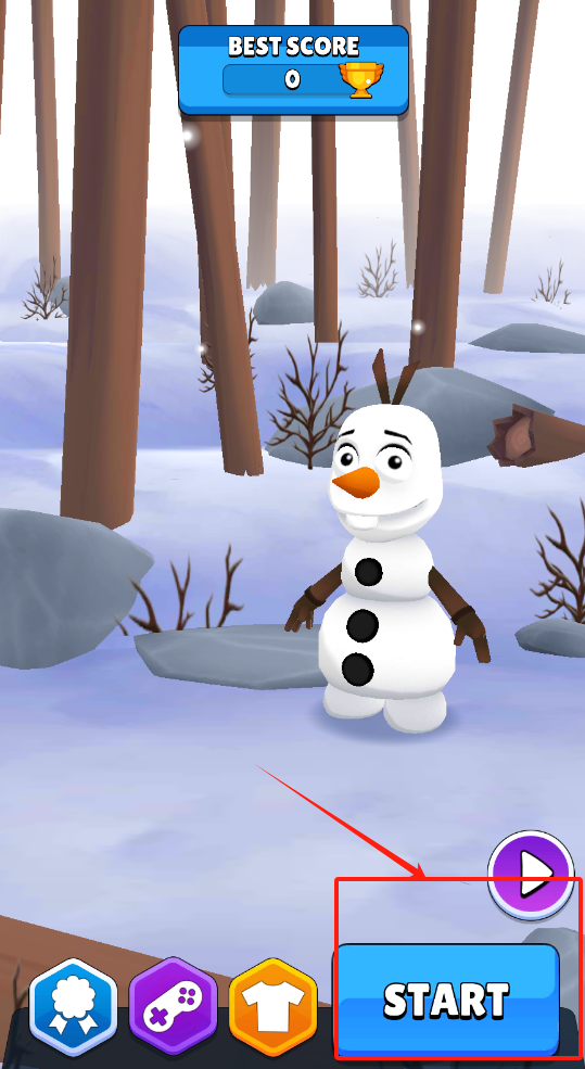 2、点击屏幕下方的开始按钮,操控雪宝在雪地中进行跑酷,努力刷新更高的分数。