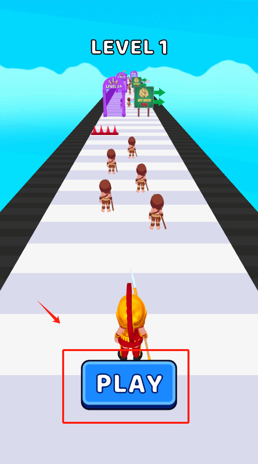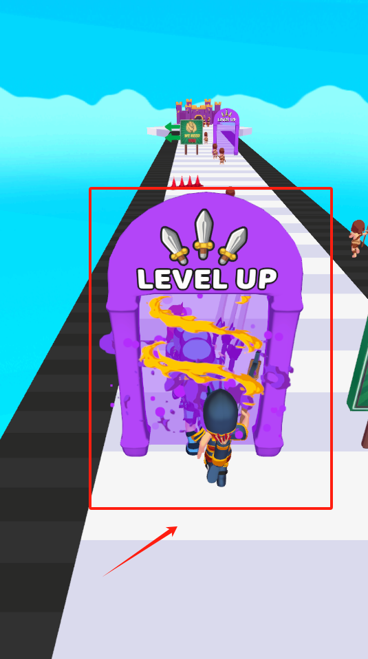 2、当你看到那个紫色的LEVEL UP拱门时,操控角色跑向它就能完成升级并进入下一关啦。