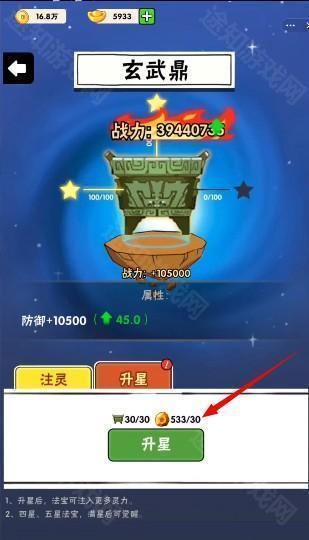 4、最后在法宝页面点击下方的“升星”按钮,消耗金币完成升级就可以了