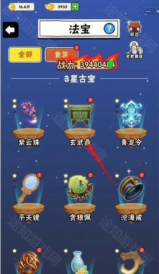 3、选择你要升级的法宝,例如这里选择“玄武鼎”