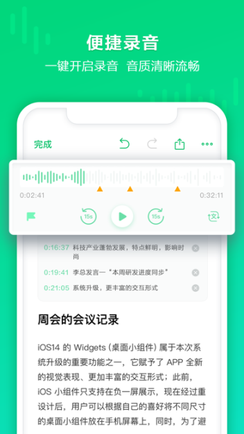 印象录音机不仅仅是一个专业录音机,更是专注释放双手提高专注度的工作、学习提效App。实时录音转写高准确率,同时有多功能编辑器辅助提效,帮助你快速编辑出稿。