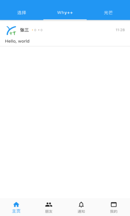 一个适用于学生的小小工具。其包含四个主页面,分别为主页、朋友、通知、我的。其中,名为“主页“的页面中包含有三个子页面,且名为“朋友“的页面中包含有两个子页面。此外,名为“我的“的页面包含个人昵称头像、扫码、设置、提个建议、检查更新等等。