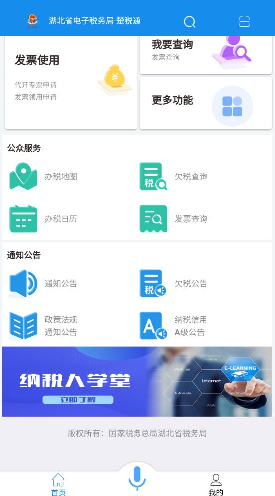 您可通过本模块办理发票使用、申报缴税(费)、证明开具等相关涉税(费)事项。您以单位纳税人、自然人或个体工商户等不同身份登录后,“楚税通”会自动为您展示可以办理的税费业务。
