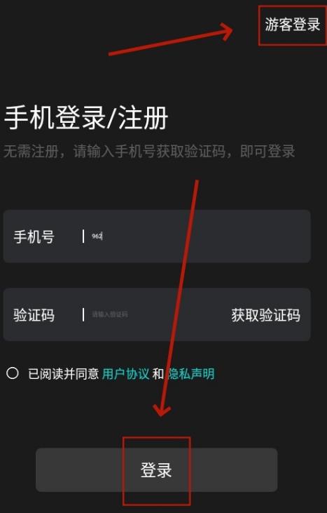 2.进入后,登录您的账号。若不想登录,可点击上方的游客登录。