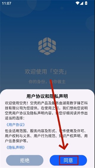 1. 第一步,打开空壳app,于登录页面要同意软件的相关协议。