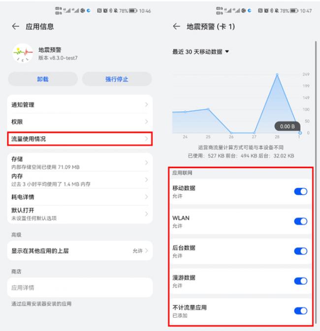 2、用户的手机网络没有被设定为不计通信量,这会对地震预警软件的运行造成很大的影响。
