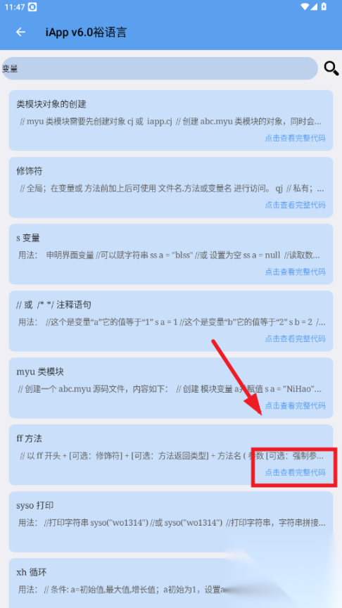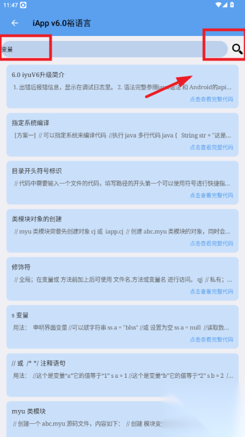 款输入要查询的代码关键词,比如变量,点击