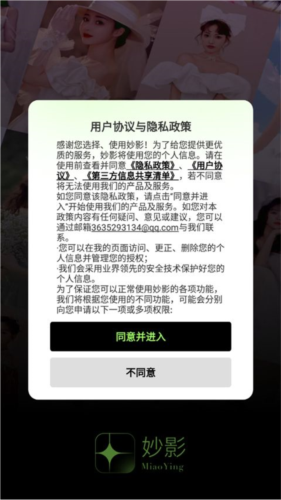 1、通过双击操作打开妙影软件,随后点击“同意并进入”选项。