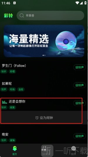 4. 直接点击心仪的铃声,既能够将其设为手机铃声,也能设为闹钟铃声。