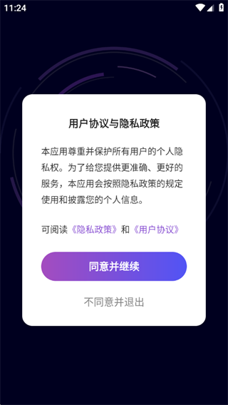 1. 仔细阅读隐私政策与用户协议后,点击“同意并继续”。