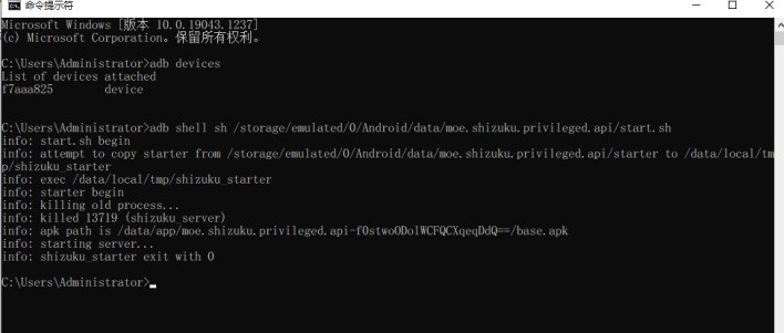 5、按下Enter键确认,即可成功启动Shizuku。