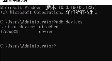 5、输入“adb devices”,确认手机与电脑连接正常。