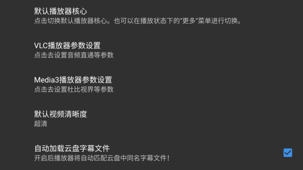 具备在云盘同目录下选择加载字幕文件的功能;能够借助射手字幕Api实现字幕的自动匹配;可兼容各类格式字幕,并有效解决字幕乱码问题。