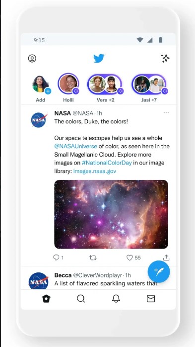 实时流呈现:推文将以实时流的方式呈现在用户的个人信息流里。