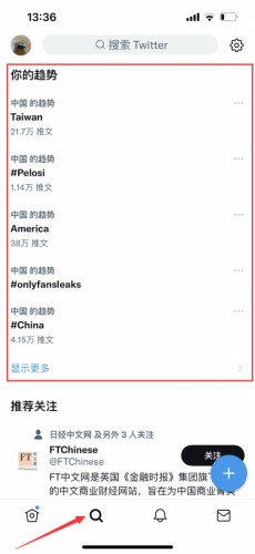 只需打开推特,点击“探索”,就能看到属于您的趋势排名。探索的位置可以修改(见下图3)。