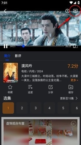 请挑选你想要观看的影视剧,在屏幕右上角能看到一个“TV”按钮,点击它即可。
