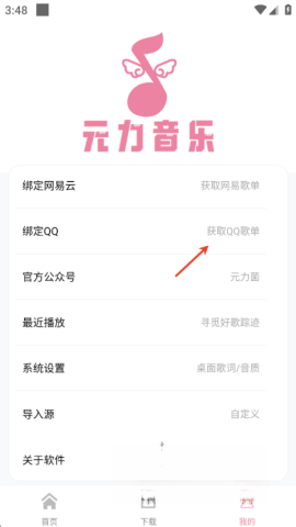 1、首先开启元力音乐,于“我的”界面便捷地点击“导入源”。